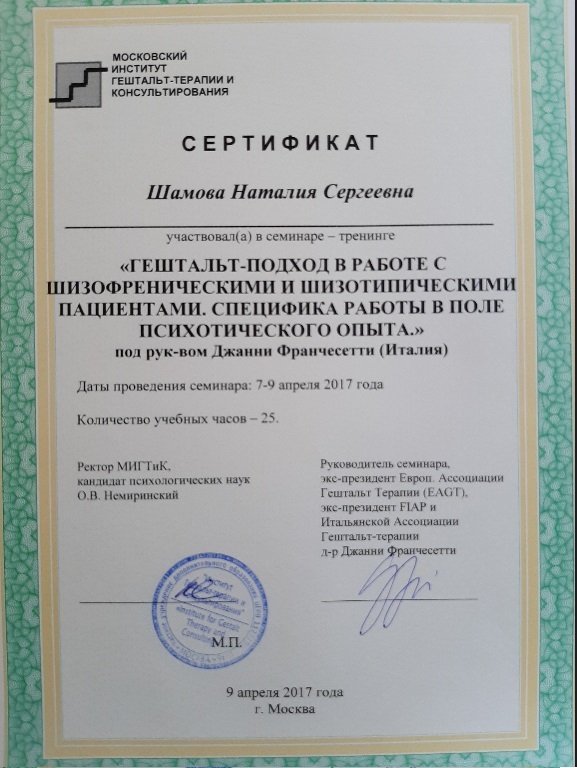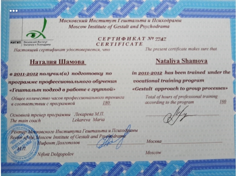 2011-2014 Московский институт гештальта и психодрамы. «Образовательная программа по стандартам Европейской Ассоциации гештальт терапии и Ассоциации Русскоязычных Гештальт институтов.»